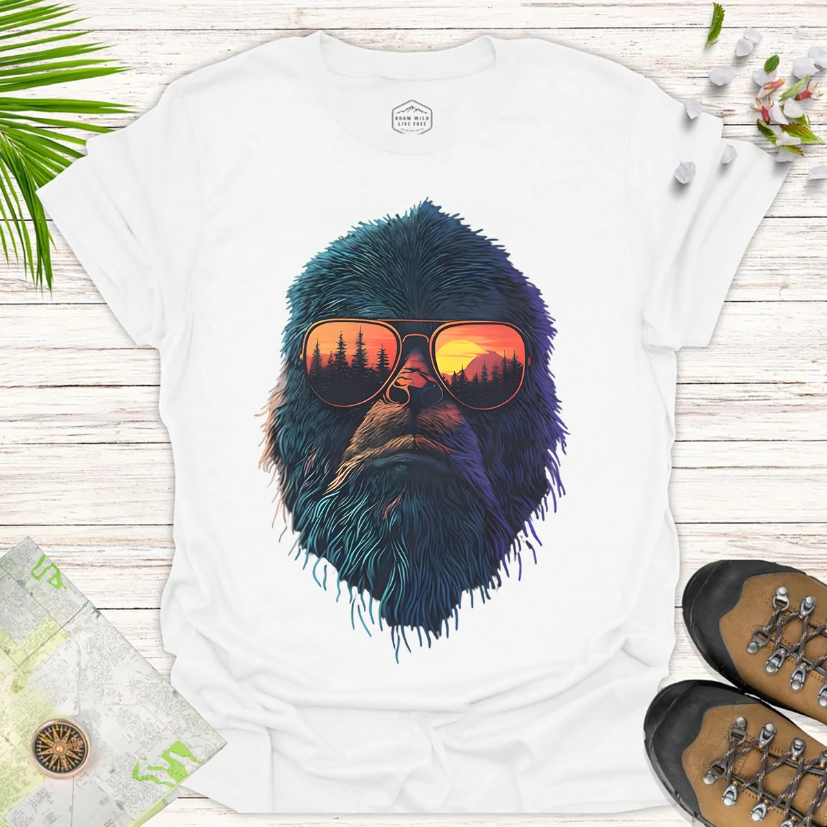 Bigfoot Sunset Tee β Funny Nature Adventure Graphic Shirt